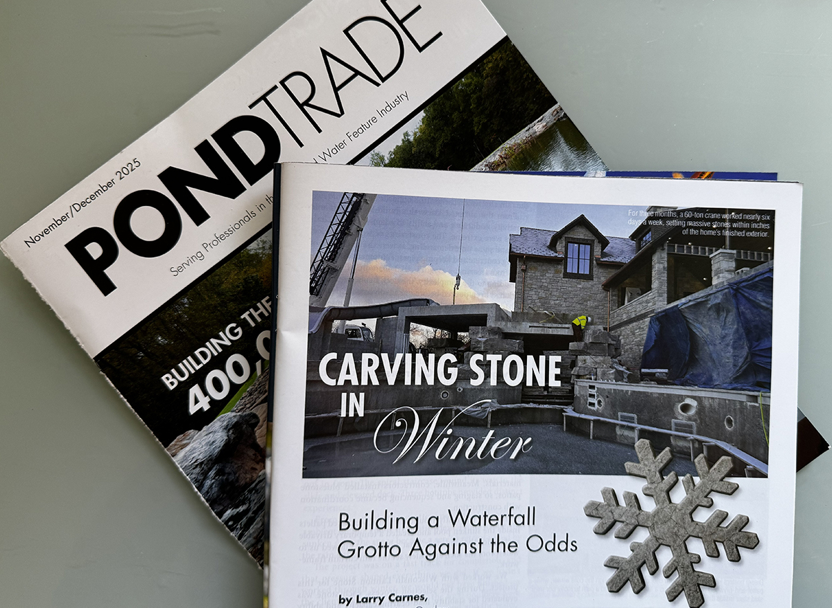 Pond Trade Magazine – November/December 2025 – “Carving Stone in Water” – pages 19-23